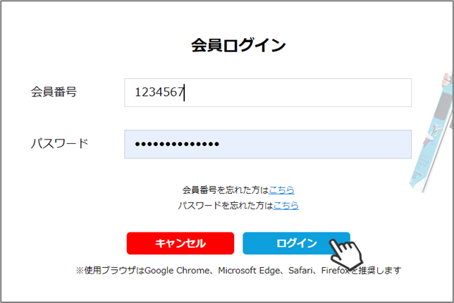 ②下記画面に遷移しますので、「会員ログイン」をクリックしてください。