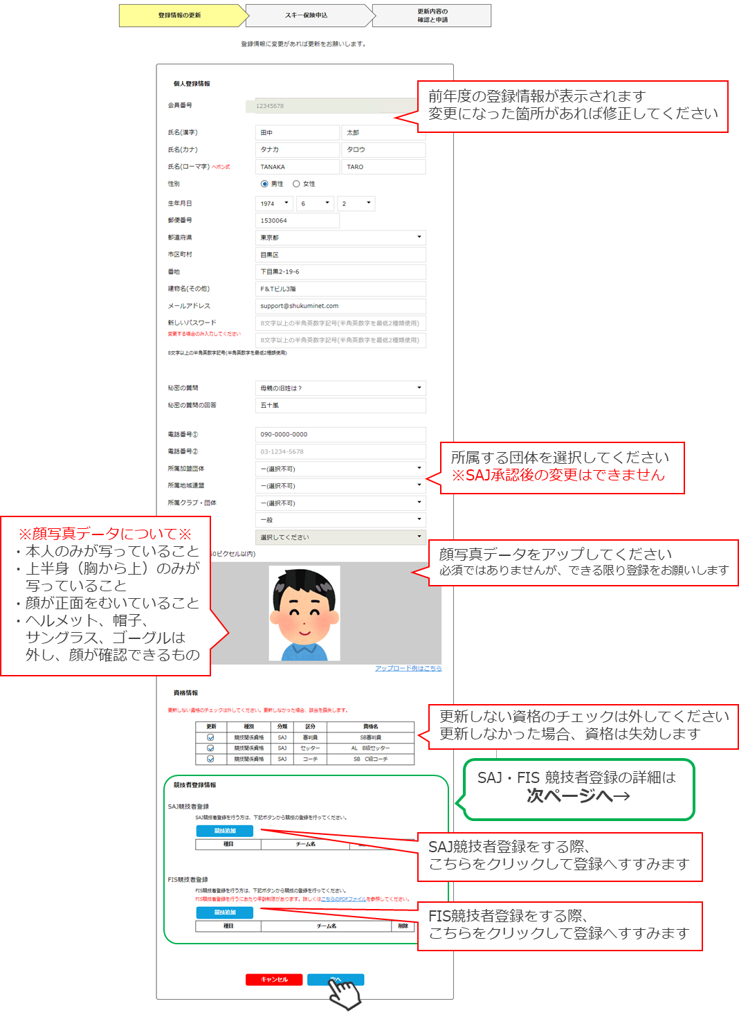 ※FIS競技者登録は、SAJ競技者登録と同様におこなってください。