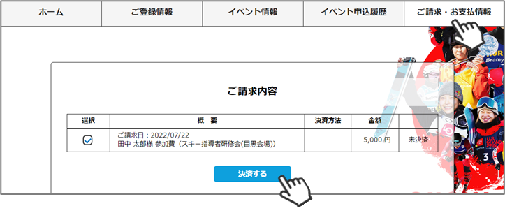 ⑥「参加費のお支払に進む」または「ご請求・お支払情報」をクリックしてください。