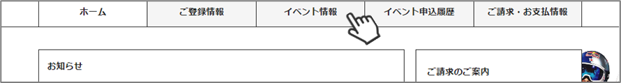 ①マイページ上段の「イベント情報」をクリックしてください。