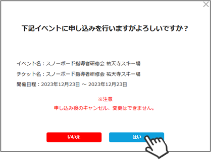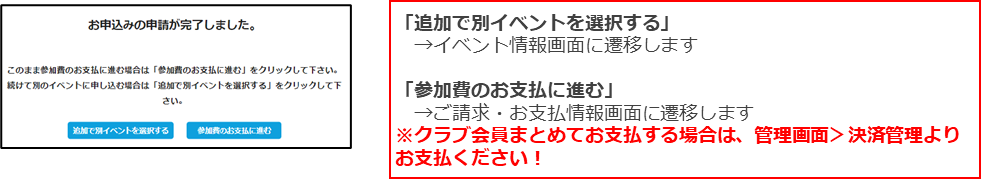 お支払いが完了したら、正式にイベント申込が完了となります。